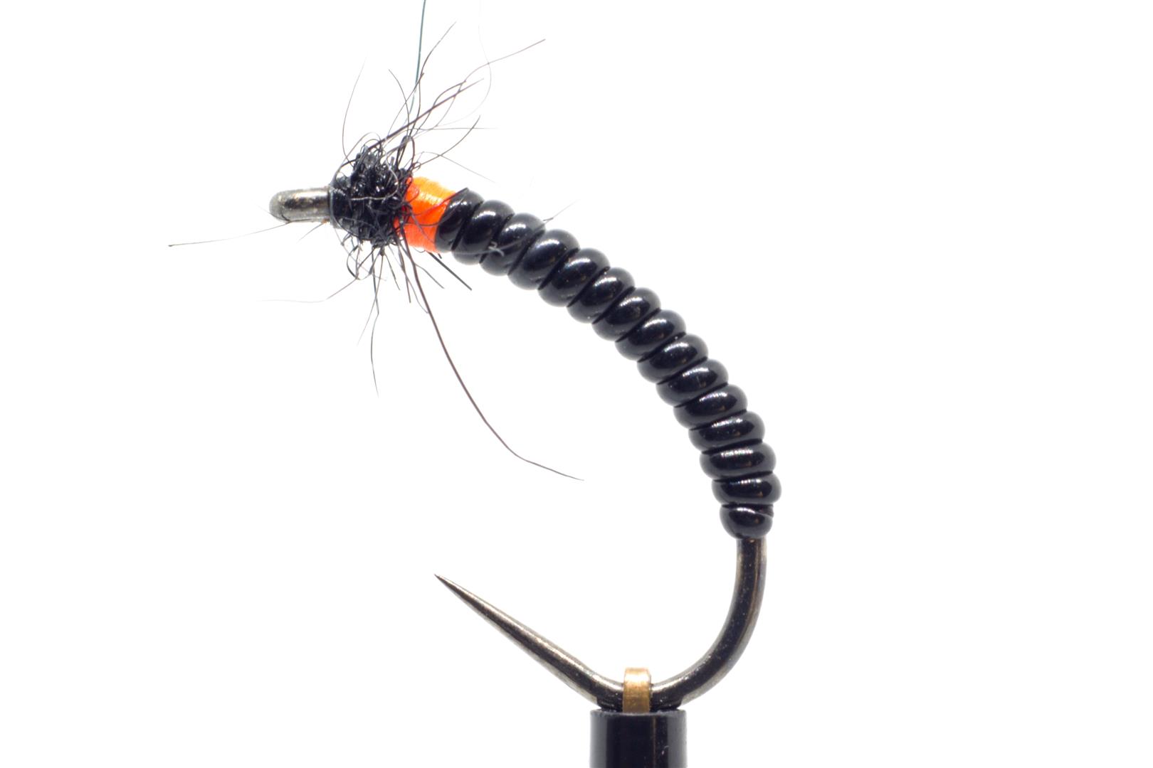 Lehký jezerní pakomár pro lov ochytaných ryb. Malý oranžový límeček mu dodává na atraktivitě a nenechá žádného duháka chladného.
