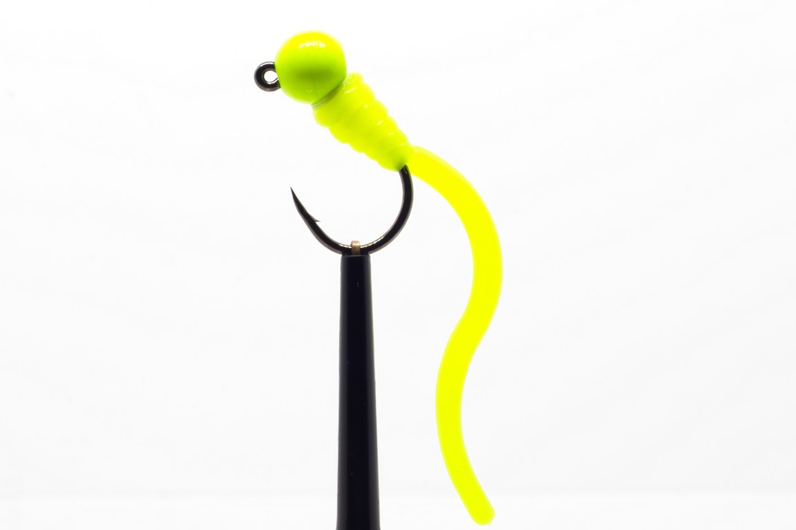 Napodobenina žížaly z materiálu Squirmy wormy, cca 5 cm dlouhá. Svůdně se vrtící materiál nenechá žádnou rybu chladnou. Ostře žlutá barva je výborná na čerstvě vysazené duháky, do kalné vody nebo velkých hloubek na přehradách při lovu okounů.