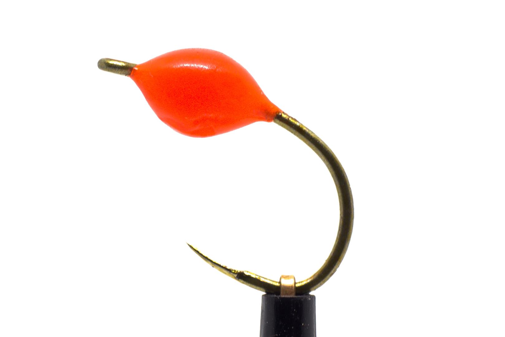 Zatížená napodobenina jikry v ostře oranžové barvě vázaná na háčku Hanák Competition.