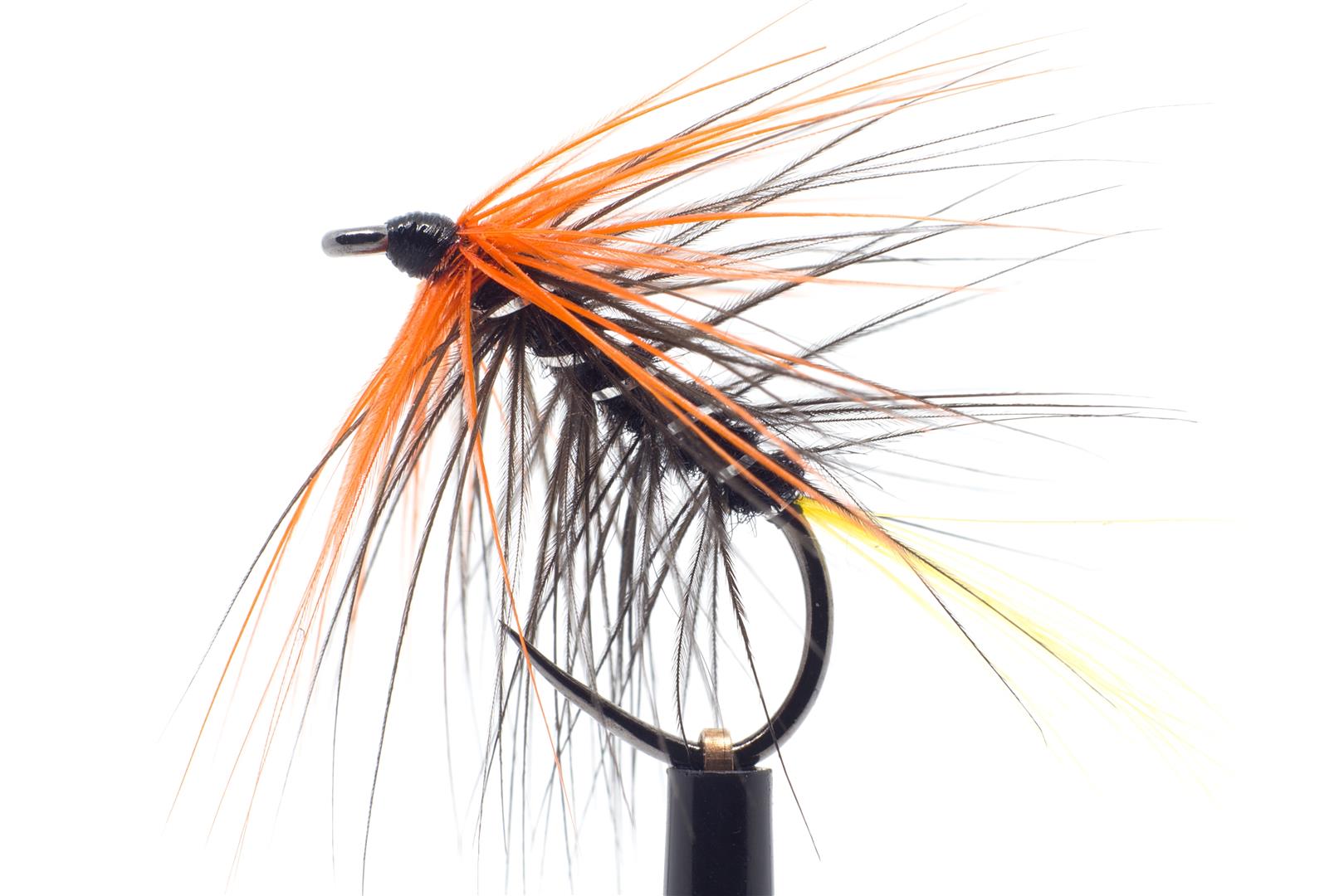 Známá anglická jezerní moucha ,,vylepšená" oranžovými nožičkami ze slepice.