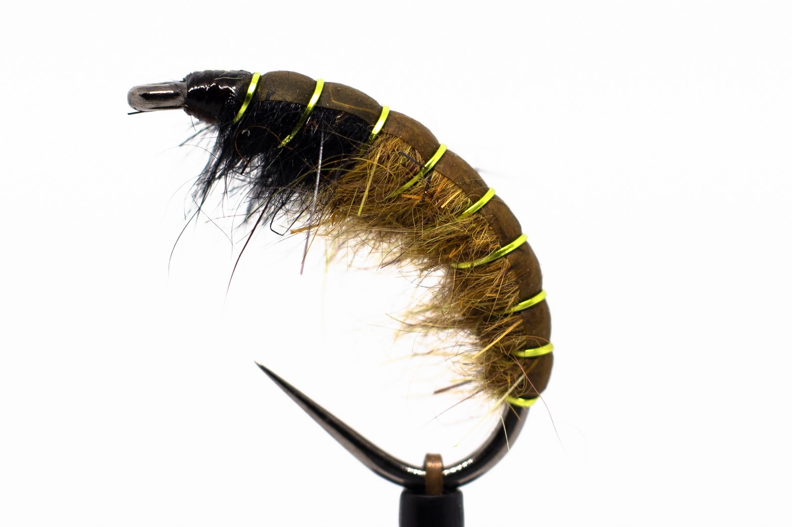 Olivový vzor české nymfy pro lov parem, lipanů i pstruhů.  celý popis