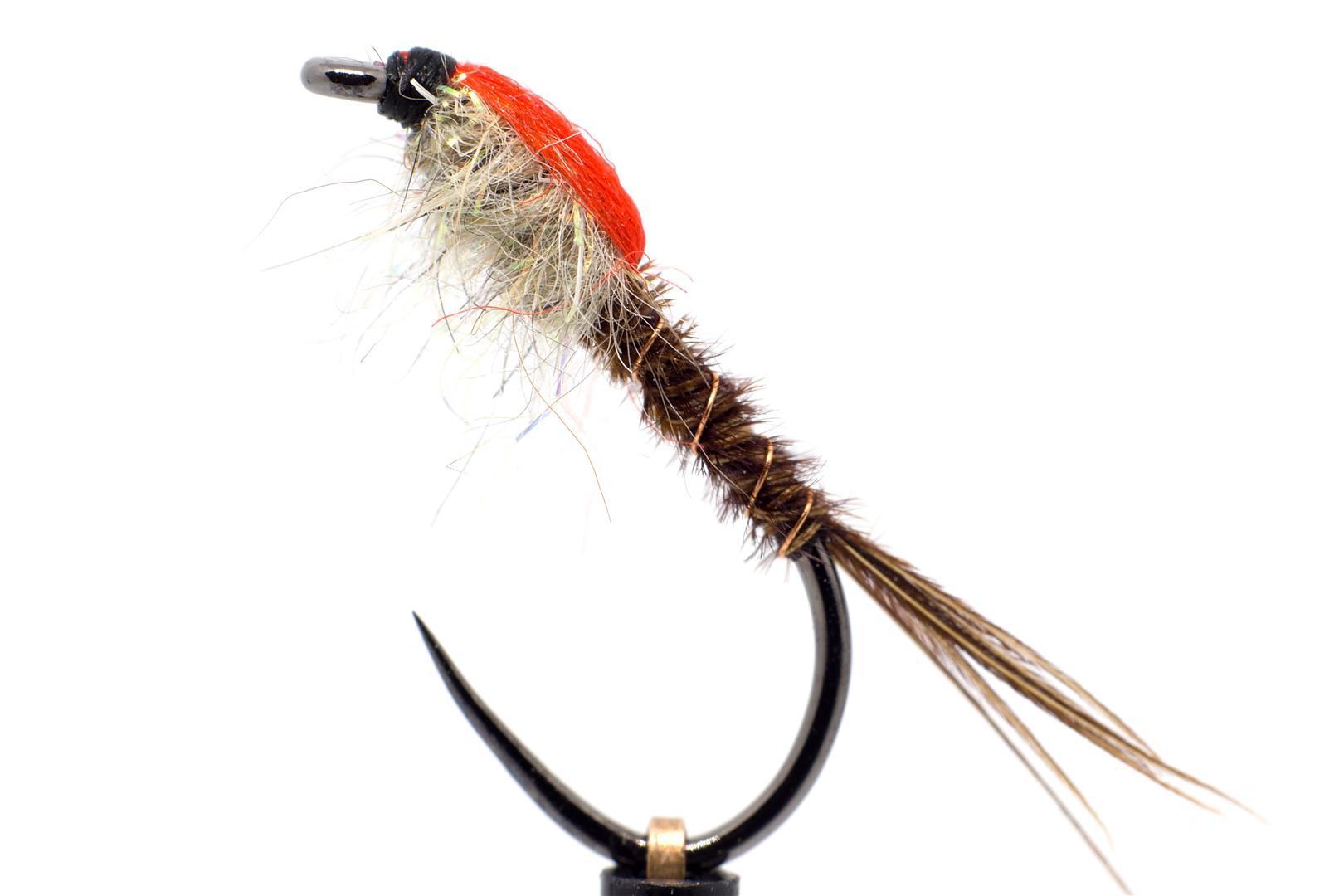 Klasický vzor nymfy pro lov pstruhů i lipanů na řekách i jezerech. Červená pochvička je pro ryby magicky přitažlivá.