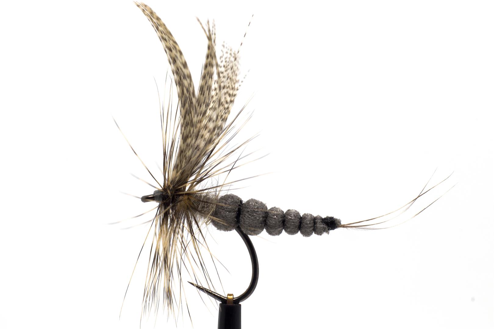 Velká suchá májovka s realistickým tělíčkem z polycelonu. Dobře plave a v období líhnutí šedě a béžově zbarvených májovek je pro lov pstruhů a lipanů nepřekonatelná. Pokud máte v plánu cestovat do Švédska v jarním období, určitě se jimi vybavte.