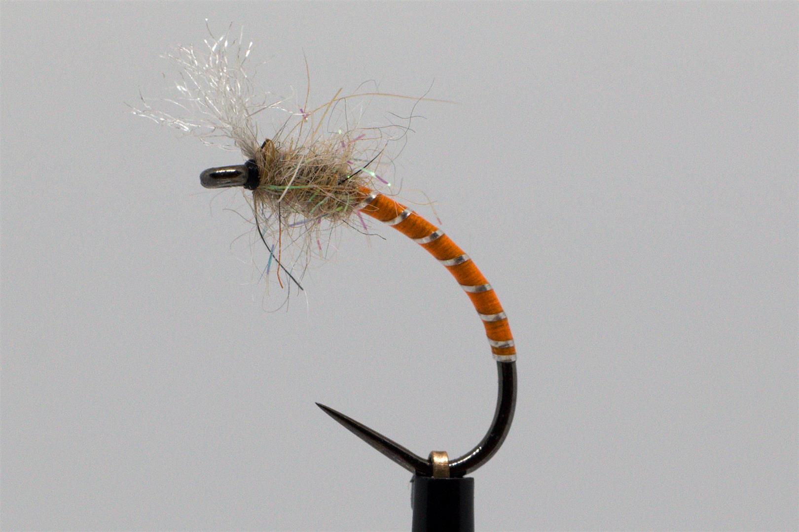 Vzor napodobující hnědé a rezavé pakomáry. Dobře ho berou duháci i kapři.
