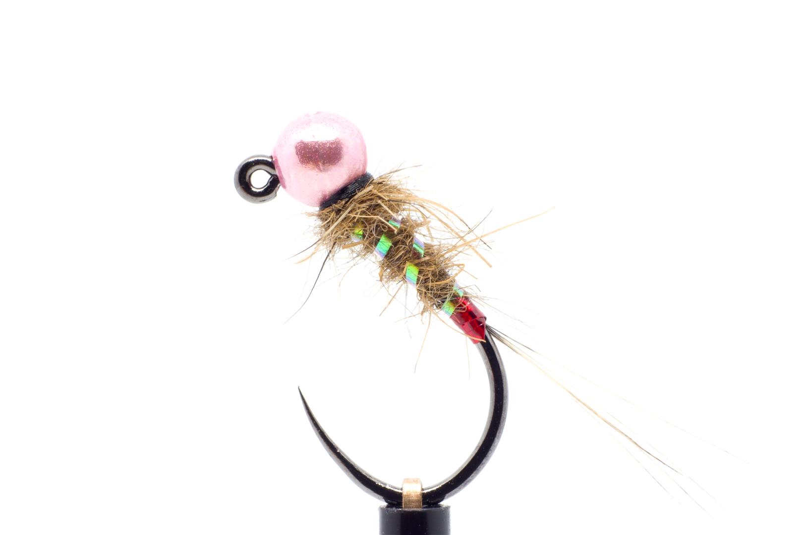 Zaječí ouško s metalickou růžovou hlavičkou. Funguje na pstruhy i lipany.