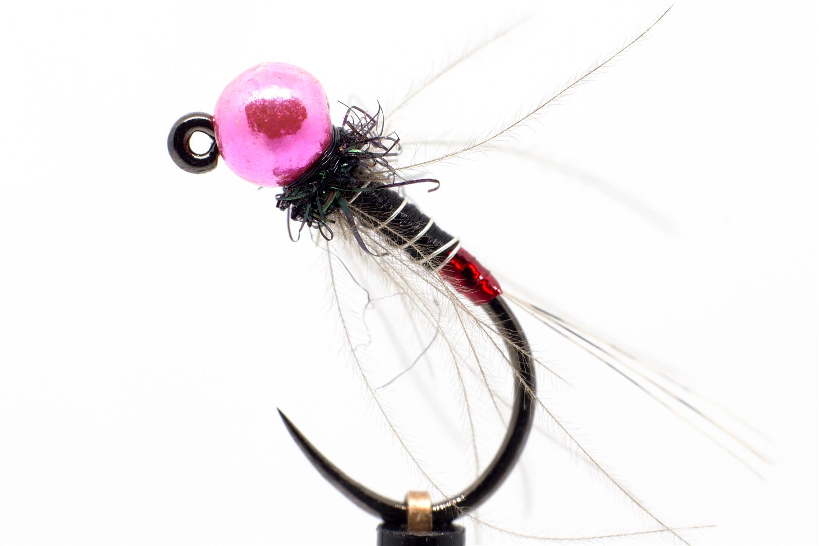 Sirupčík - jedna z nej mušek pro lov pstruhů a lipanů na všech řekách. Verze se světle růžovou metalickou hlavičkou funguje v přikalené vodě. CDC mušce dodá správně svůdný pohyb.