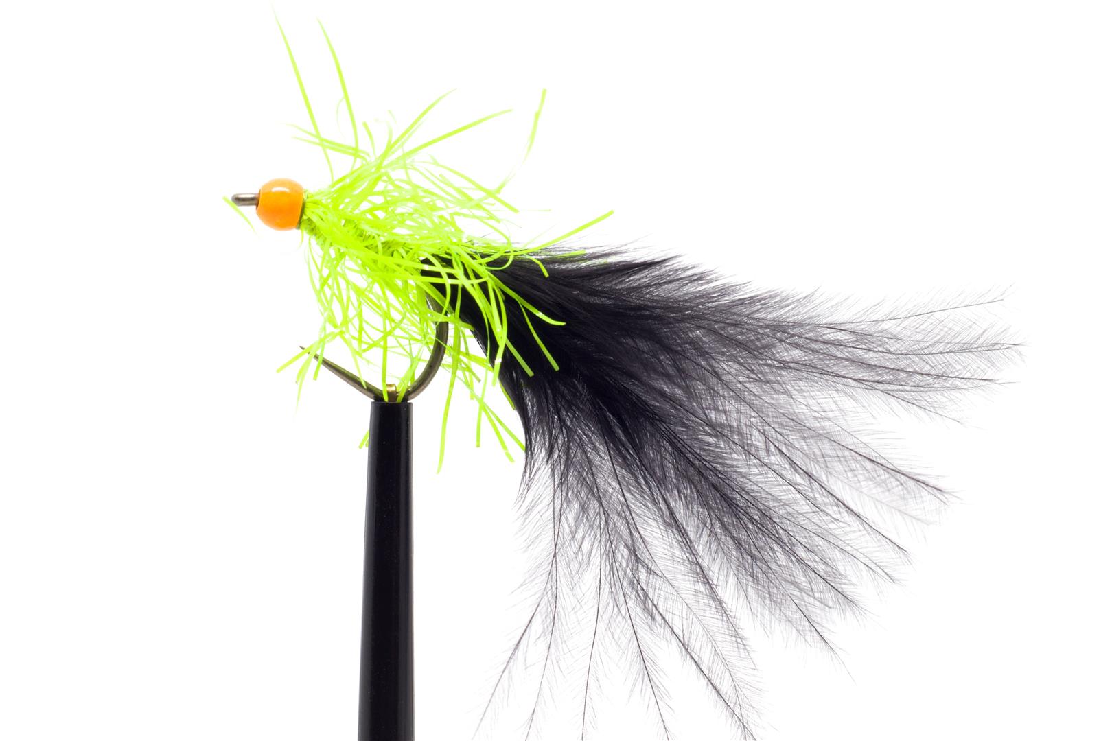 Jedna z nejlepších lur pro lov čerstvě vysazených pstruhů. Kombinace černého ocásku, fluo žlutého tělíčka z šenylky Neon Hackle a světle oranžové hlavičky je pro ryby neodolatelná. Lovíme se šňůrami různé potápivosti, dle dané situace.
