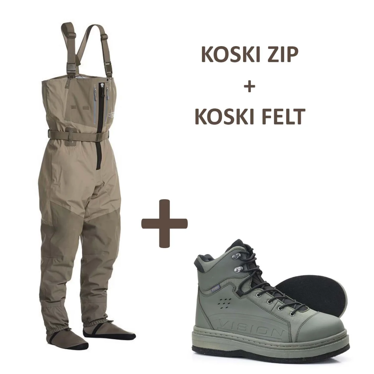 Brodící set Vision Koski ZIP + boty Koski 2.0 s filcovou podrážkou