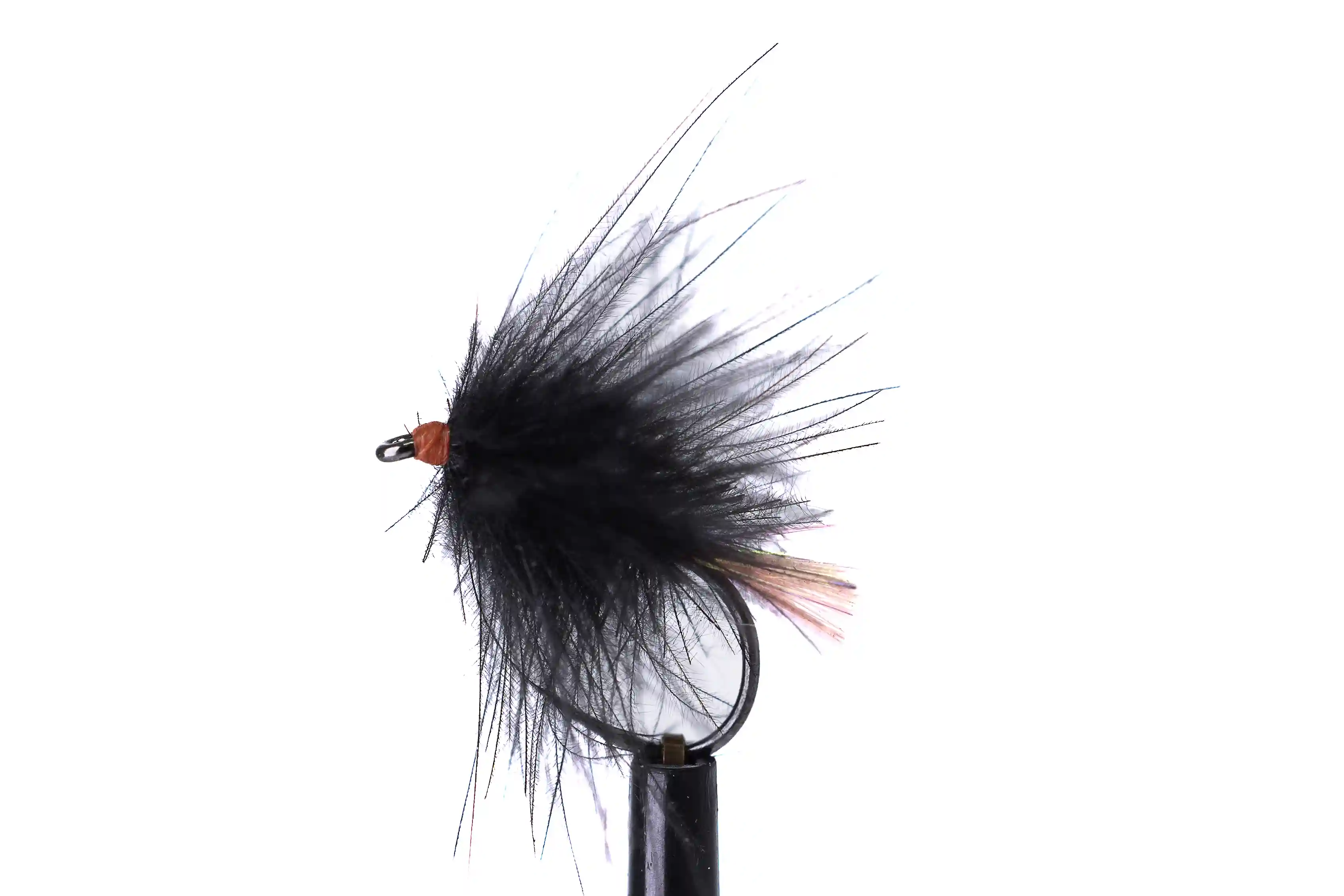 Černá verze nejoblíbenější suché mušky u nás. Velice dobře funguje v čisté vodě. Napodobuje všechen tmavý až černý hmyz. Funguje na pstruhy, lipany i bílou rybu.