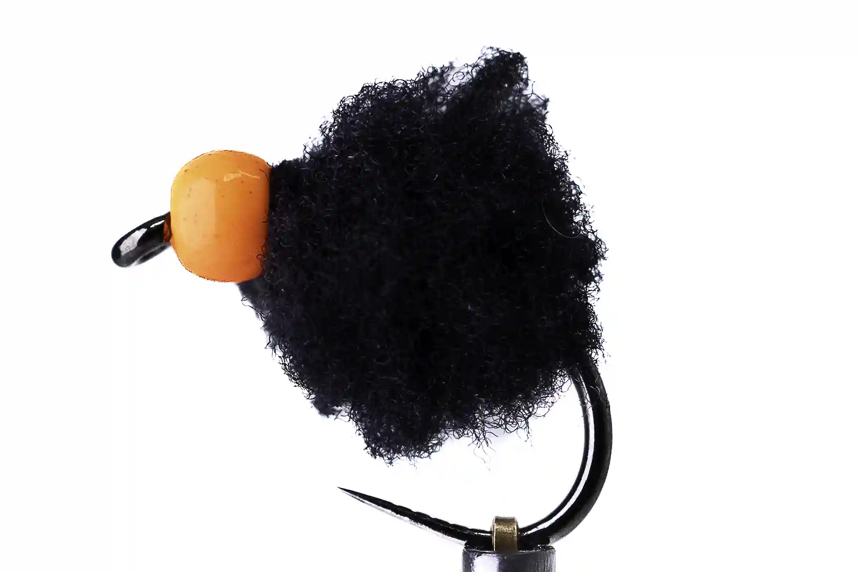 Černý egg s fluo oranžovou hlavičkou pro lov pstruhů duhových, sivenů i potočáků.