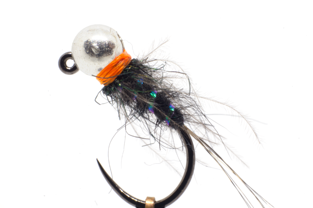 Černá + oranžová = univerzální kombinace na pstruhy i lipany, v čisté i kalné vodě. Jeden ze základních vzorů.