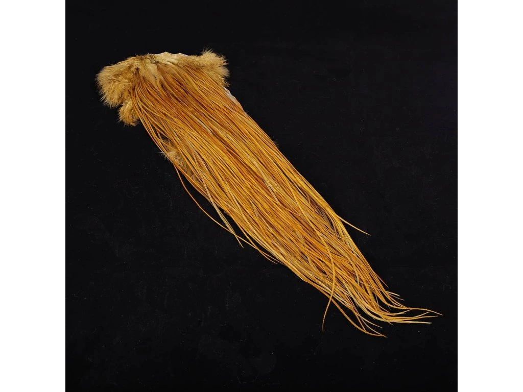 V balení je 4-5 ks ( v součtu minimálně 120 cm ) geneticky modifikovaných pírek kohouta, ze kterých můžeme zhotovit až 100 ks suchých mušek. Pírka jsou tříděna podle velikosti pro snazší výběr pro konkrétní velikost háčku. Toto peří peří umožňuje zvýšit efektivitu výroby mušek a také toto peří umožň... celý popis