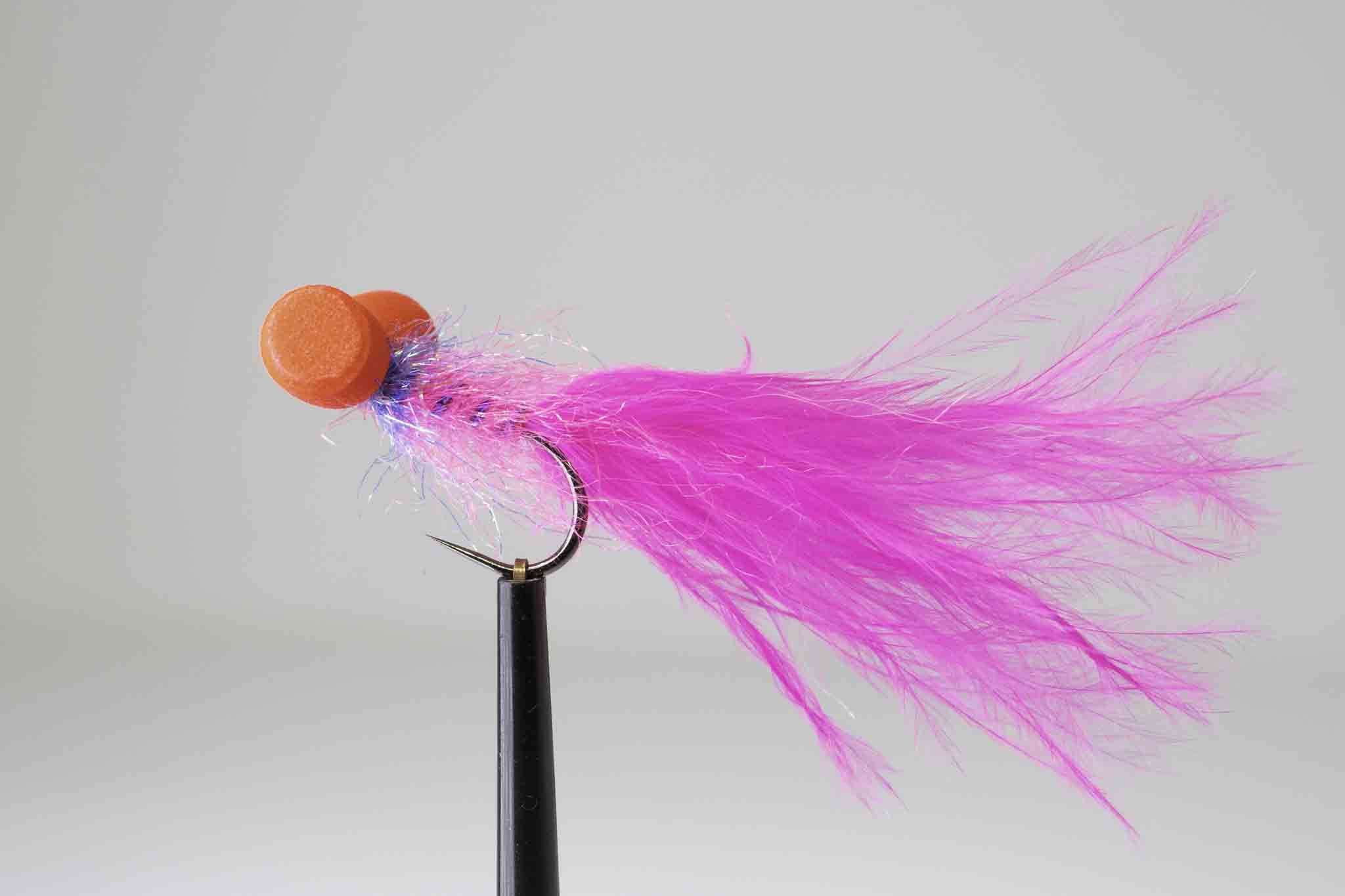Ostře růžový vzor pro lov čerstvě vysazených pstruhů a sivenů, nebo lov v kalné vodě.
