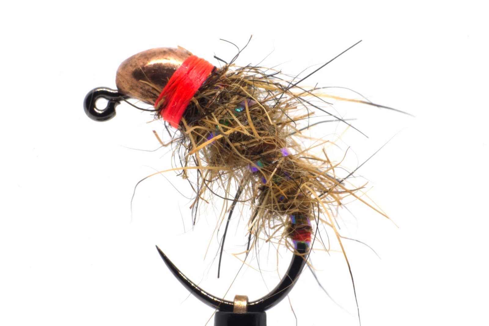 Velice účinný vzor na začátku sezóny pro lov pstruhů na řekách. Díky světlému tělíčku a oranžovému límečku je dobře vidět i v podkalené vodě.