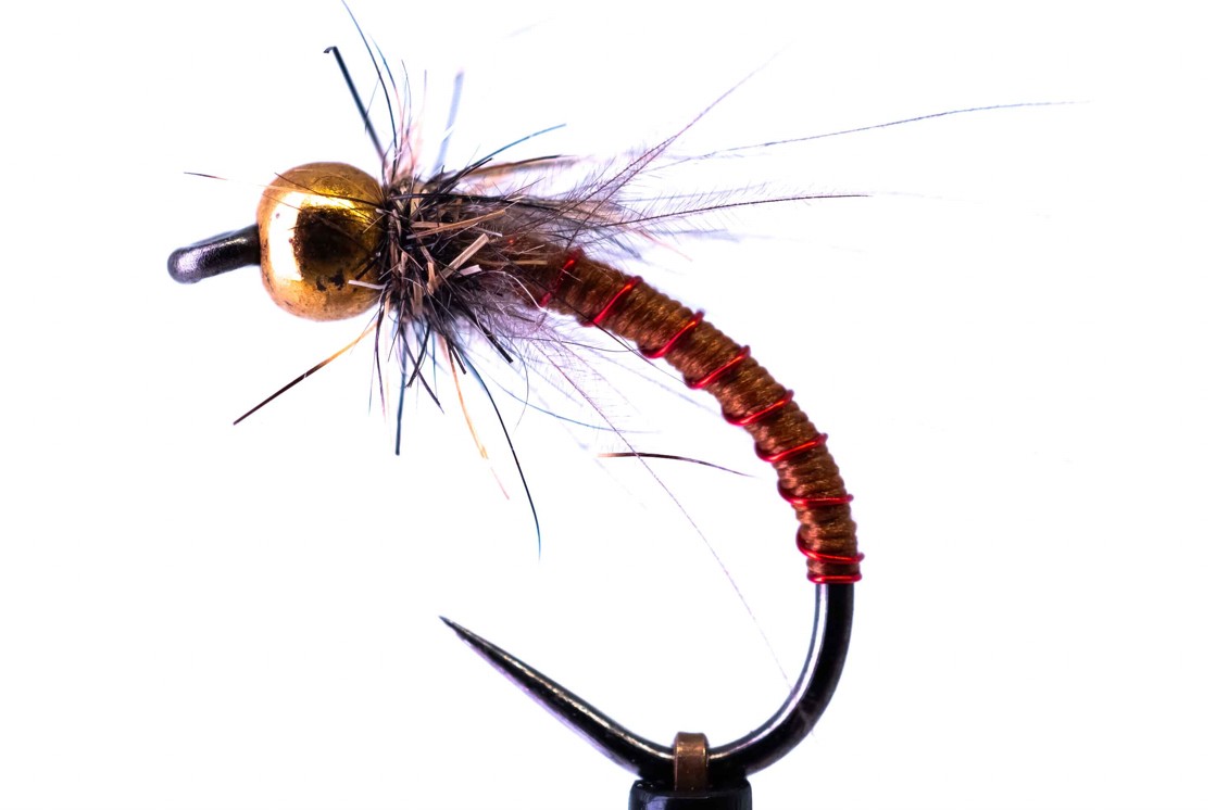 Přírodní vzor jezerního pakomára s decentní měděnou hlavičkou pro lov opatrných a starých ryb na stojaté vodě. Velmi dobře funguje při lovu stylem muška splávek.