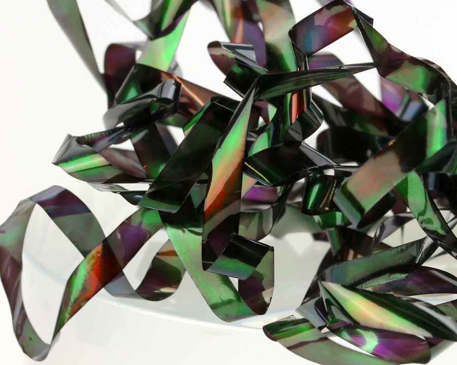 Pevná a trvanlivá perleťová folie s opalizujícím efektem, nařezaná na 3 mm široké proužky. Používá se například na tělíčka "salmon" a "saltwater" vzorů, streamerů ale je také skvělá na hřbítky nymf, blešivců a pod.