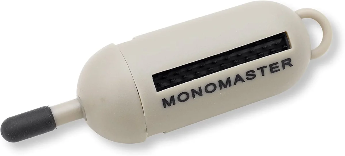 Je kompaktní, lehký, snadno se s ním manipuluje a zabere hodně použitého nylonu, který lze zodpovědně zlikvidovat doma. Monomaster se vejde do každé kapsy nebo krabičky s nástrahami, nebo se dá připevnit na D-kroužek muškařské vesty popř. na jojo.