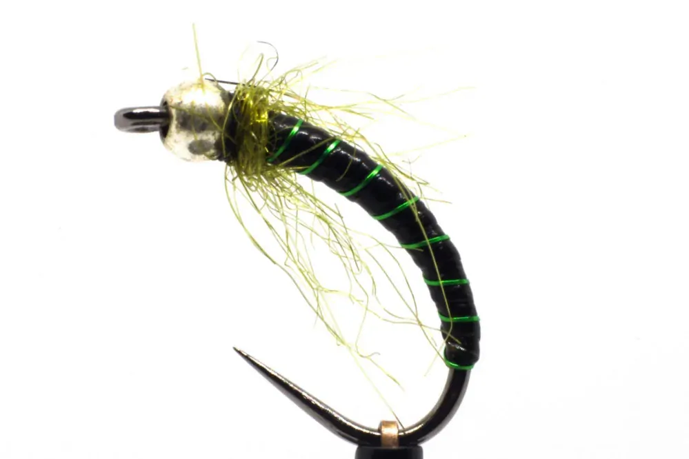 Univerzální napodobenina všech pakomárů v zelené a olivové barvě obohacený o lehkou stříbrnou hlavičku.
