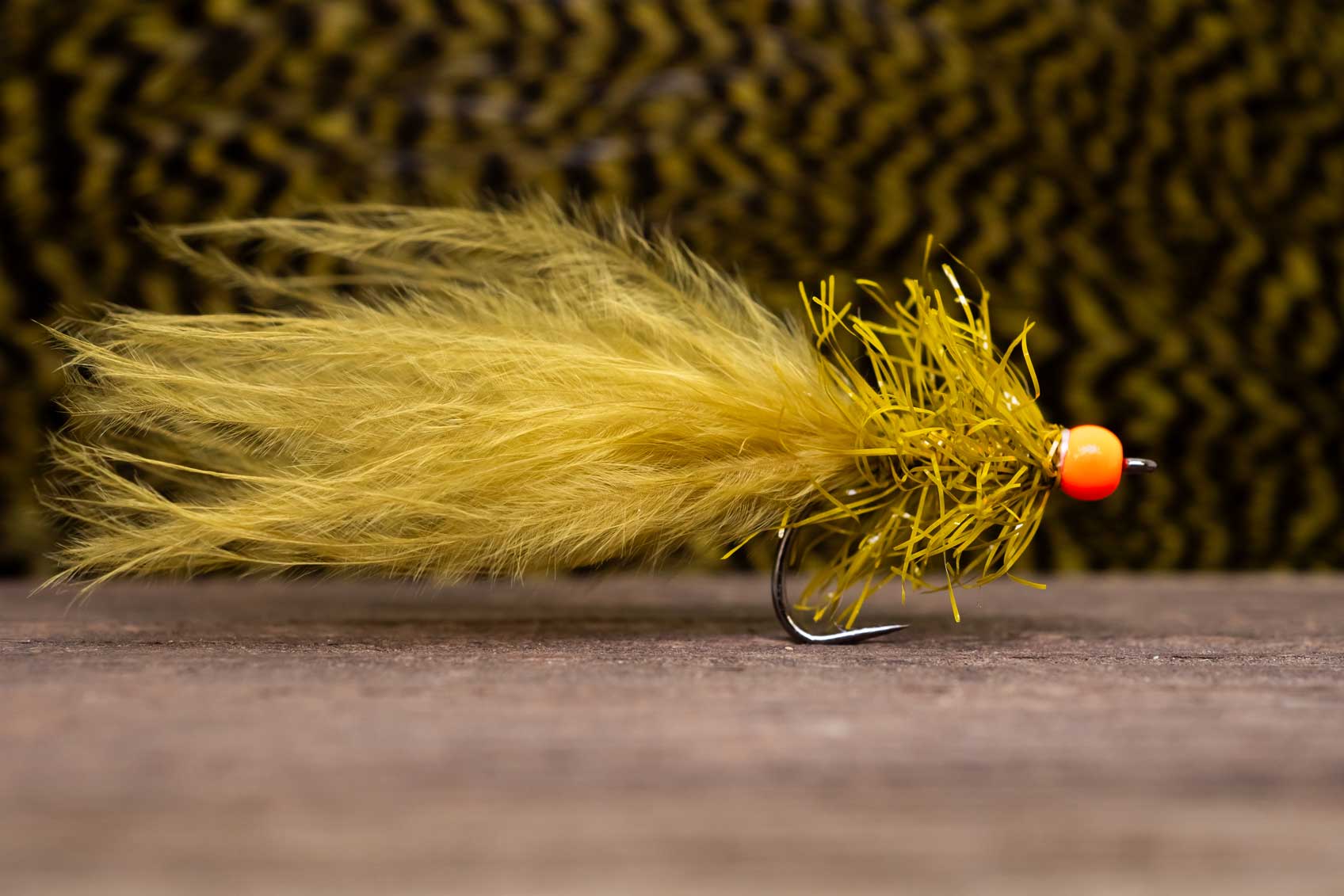 Velice dobře fungující streamer pro lov pstruhů na jezeře i stojaté vodě. Barvou může připomínat larvu vážky a spouštěč v podobě oranžové hlavičky nenechá žádného pstruha klidného.