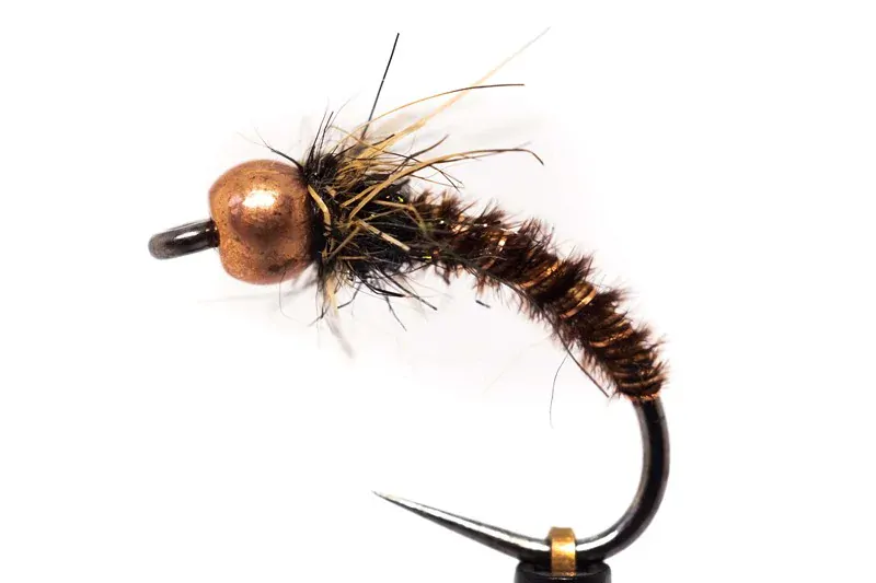 Přírodní vzor jezerního pakomára s decentní měděnou hlavičkou pro lov opatrných a starých ryb na stojaté vodě. Velmi dobře funguje při lovu stylem muška splávek.