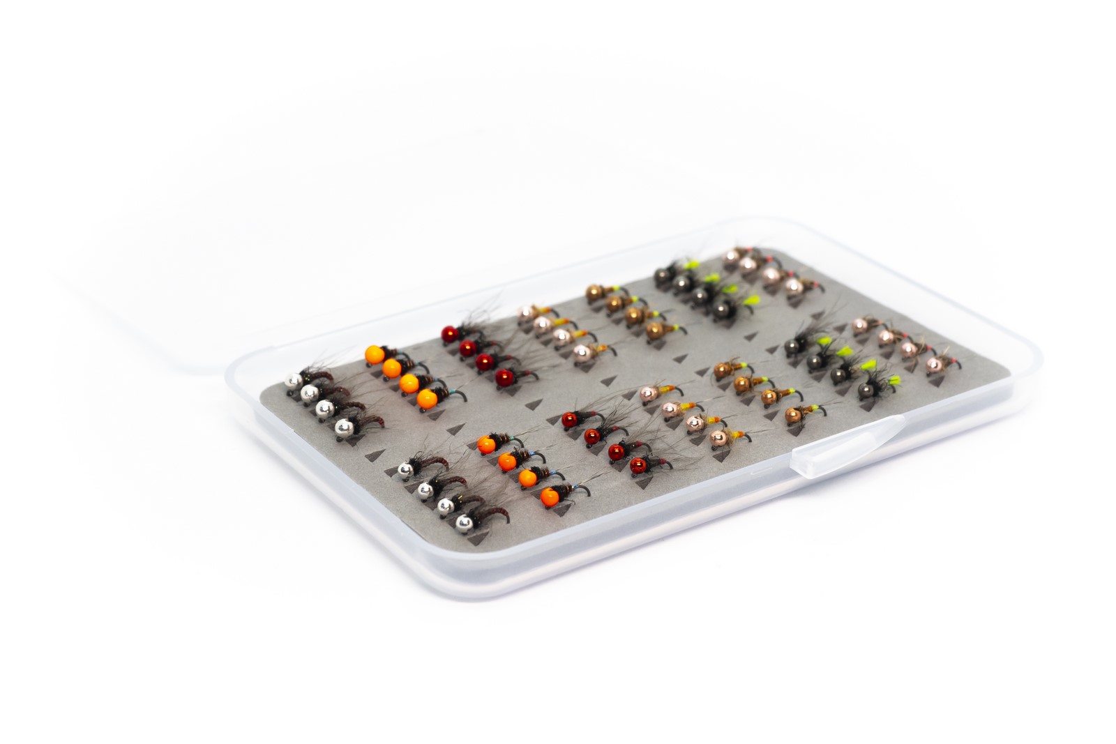 Velikosti mušek si můžete opět libovolně zvolit anebo vsadit na náš výběr - vel.18 + 3mm tungsten a vel.20 + 2.5mm tungsten. A jak je u nás zvykem, sada je zabalena v tenké průhledné a lehké krabičce, která se vejde do každé kapsy.
