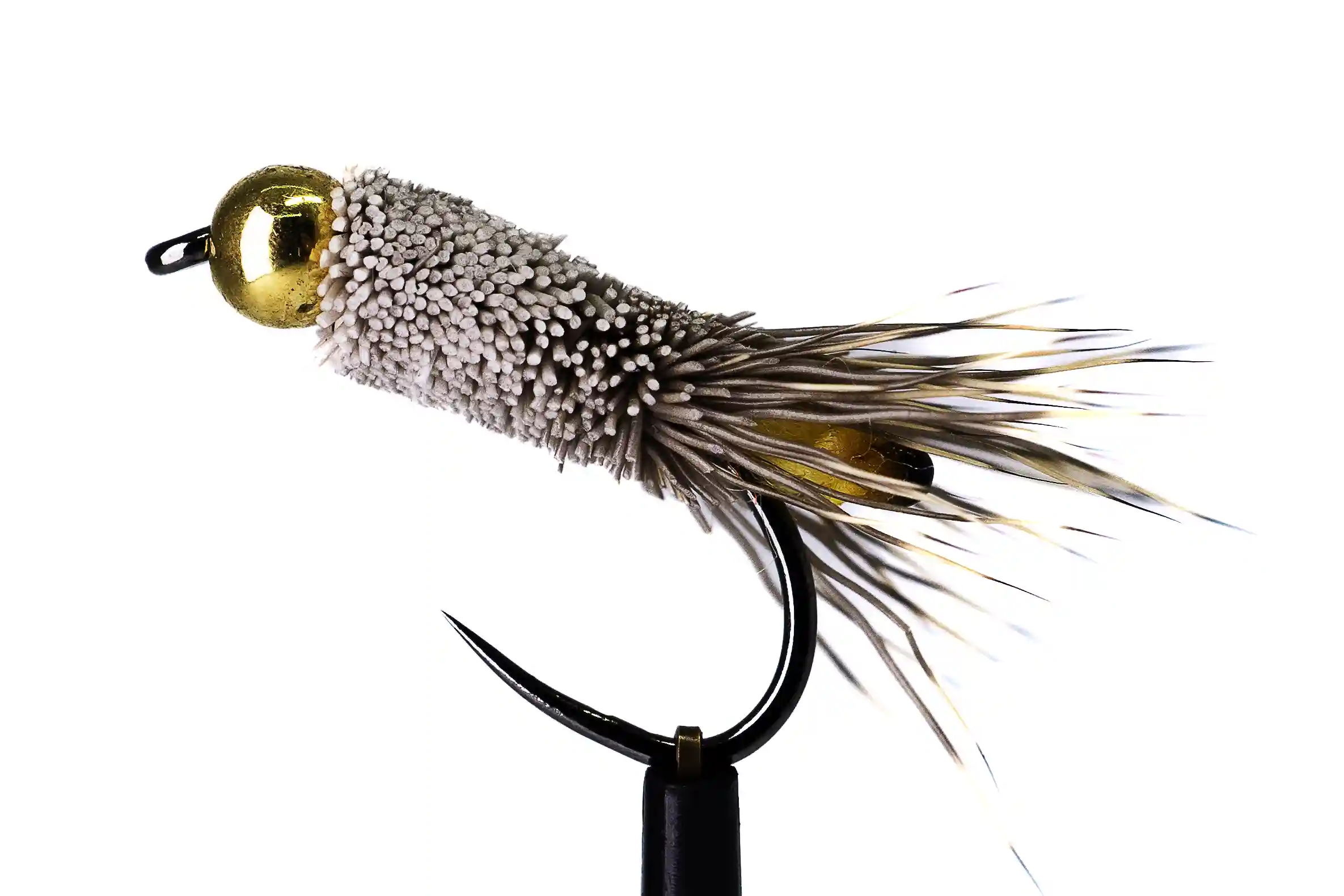 Velice účinný vzor napodobující larvu chrostíka ve schránce se žlutým konečkem pro lov pstruhů a lipanů v čistých řekách. Na přání lze kombinovat s různými barvami hlaviček.