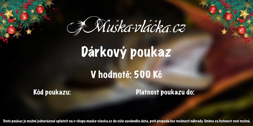 Vánoční voucher na odběr zboží v internetovém obchodě muška-vláčka.cz v hodnotě 500 Kč. Ideální dárek pro všechny rybáře:-)
